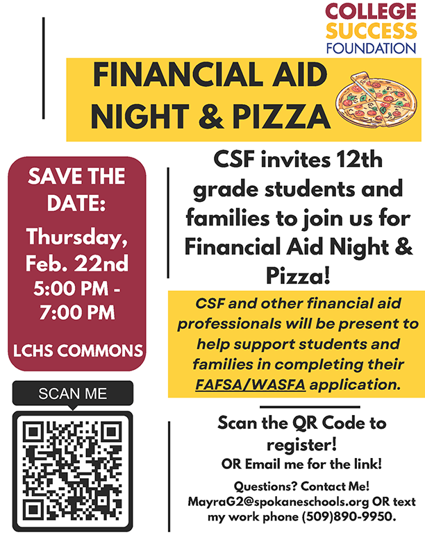 Registration for Saturday SATs is open (all Juniors will take the SAT for FREE in March and the PSAT for FREE in October). The SAT is $60 - register here. You can pick from one of the local SAT test centers - North Central, Mead, Mt. Spokane, or East Valley (LC is NOT a Saturday SAT testing location).