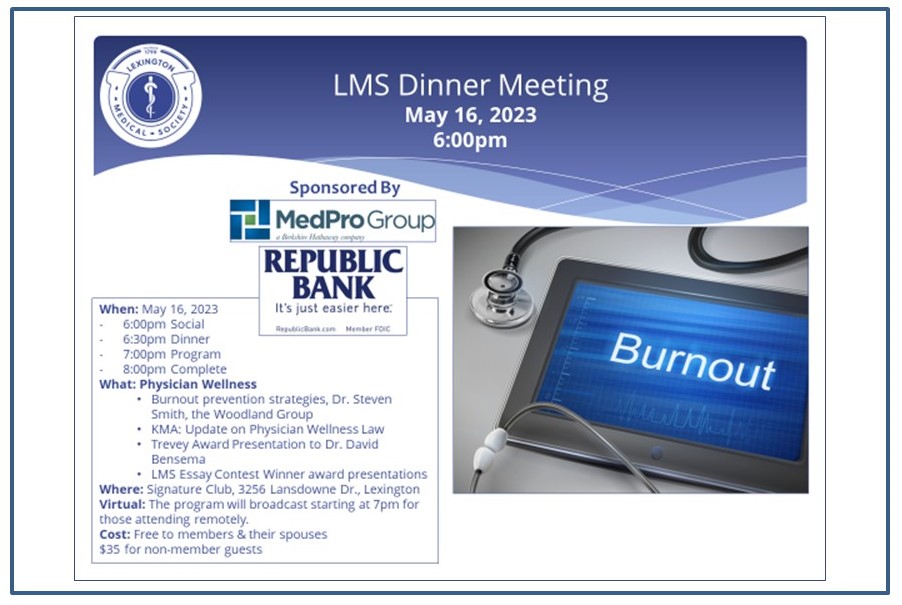 Reminder: LMS/KMA membership dues are now past due. If you have not paid your dues for 2023, please contact cmadison@lexingtondoctors.org. Those not paid by May 30 will be dropped from membership. |