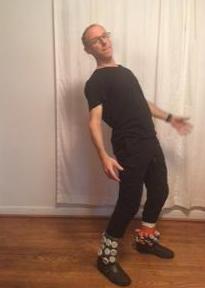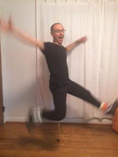 IN ACTION - the idea is I lean back and kick my feet up, and they stay up! Cuz I'm supported by the stick! (I mean the Hovercraft....)