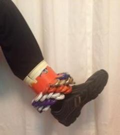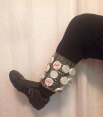 ANKLE ROCKET prototype #1. Percussion instrument with juice lids.