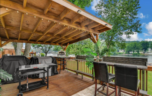 Exquisite Lakefront Retreat on Lake Mirimichi! Welcome to your own private oasis nestled in the heart of nature, where tranquility meets luxury. This stunning lakefront contemporary style home offers breathtaking water views on all sides, a serene atmosphere, and a truly remarkable natural setting on your own peninsula. As soon as you walk in the front door you will see the stunning Brazilian cherry floors, updated sparkling kitchen with all new cabinets, counters and appliances...