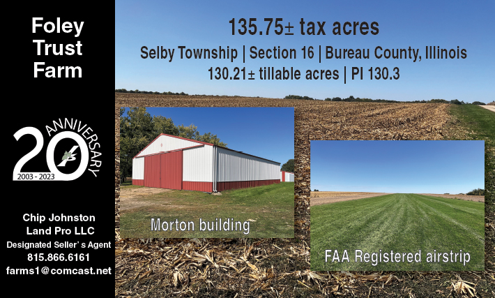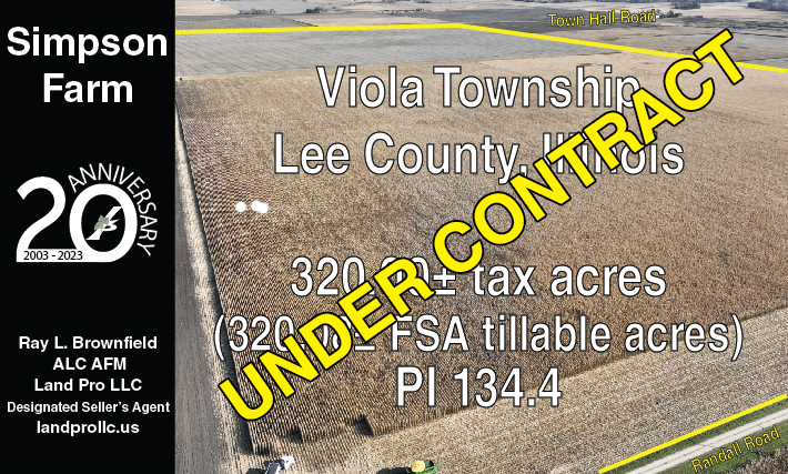 We are pleased to report that we are being contacted by landowners who desire to sell their farms during 2024 or early 2025. Land Pro LLC will be auctioning a 41.658-acre farm in McLean County, Illinois just south of Chenoa (intersection of Interstate 55 and US Hwy 24). The farm has productive soils, is tile drained, and has no buildings. This is a great opportunity to get started on owning a farm whether a first-time buyer, a buyer for family, an investor, or a beginning farmer. This excellent farm will be auctioned (live online only) on Tuesday, February 27, 2024, beginning at 10:00 am. For more information and to register for the Perry Chenoa Farm Auction, click here.