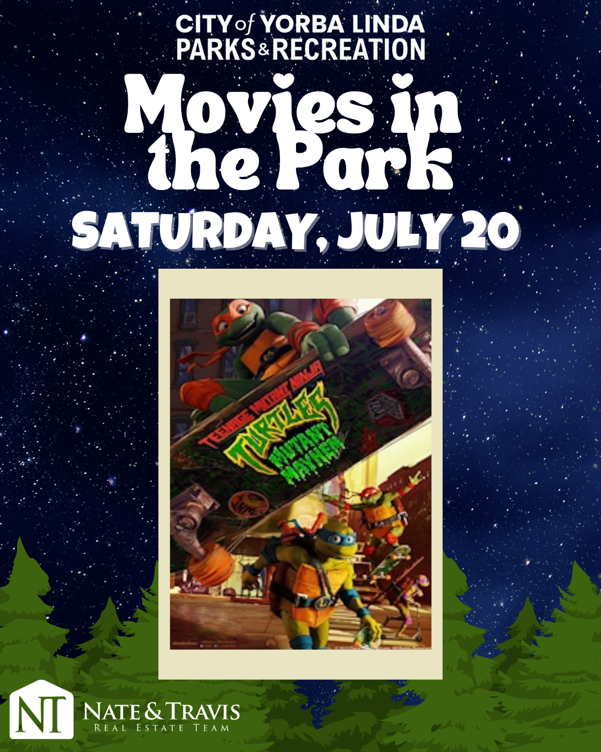 Come join us at Eastside Community Park to enjoy a special showing of Teenage Mutant Ninja Turtles: Mutant Mayhem. Enjoy a Saturday evening in the park while watching a family-friendly movie on our 20ft inflatable movie screen. No pre-registration required. Make sure to bring a blanket or lawn chair for seating and some snacks! The movie will start at dusk; approximately 8 p.m.
