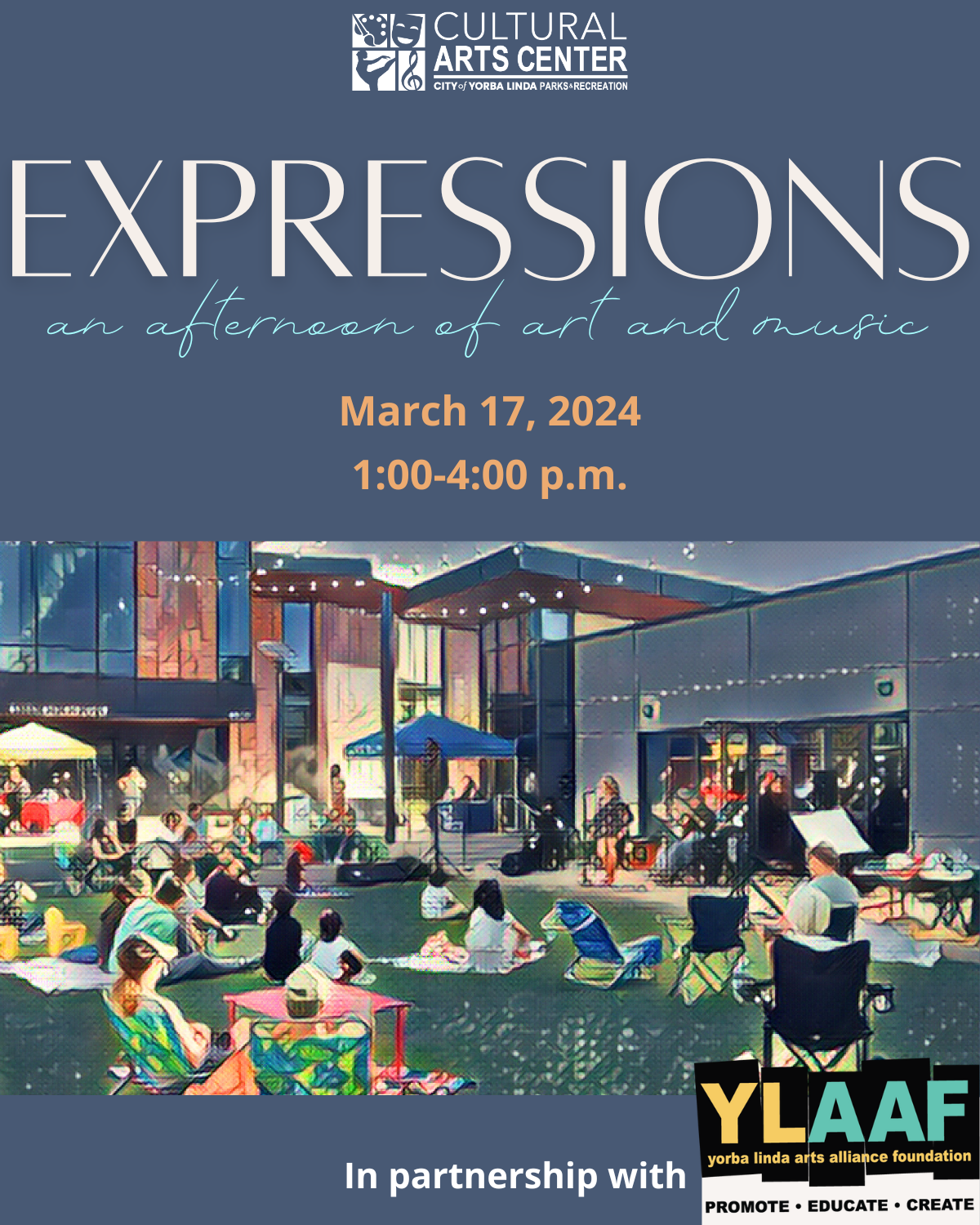 | In partnership with the Yorba Linda Arts Alliance Foundation, the Yorba Linda Cultural Arts Center's Expressions concert series is back! Now on Sunday afternoons, bring the whole family for an afternoon enjoying the arts. Enjoy live music on the events lawn, tasty eats from food trucks, and an art walk along the paseo featuring local artists! Kicking off the new series will be Funkvision, an R&B/ Jazz/Rock group. Food will be available for purchase from Taco Miendo and Cali Delights food trucks. This event is free to attend and no registration is necessary. Mark your calendars for upcoming dates; April 21, May 5 and June 23. For more information, please call 657-242-4660. | |