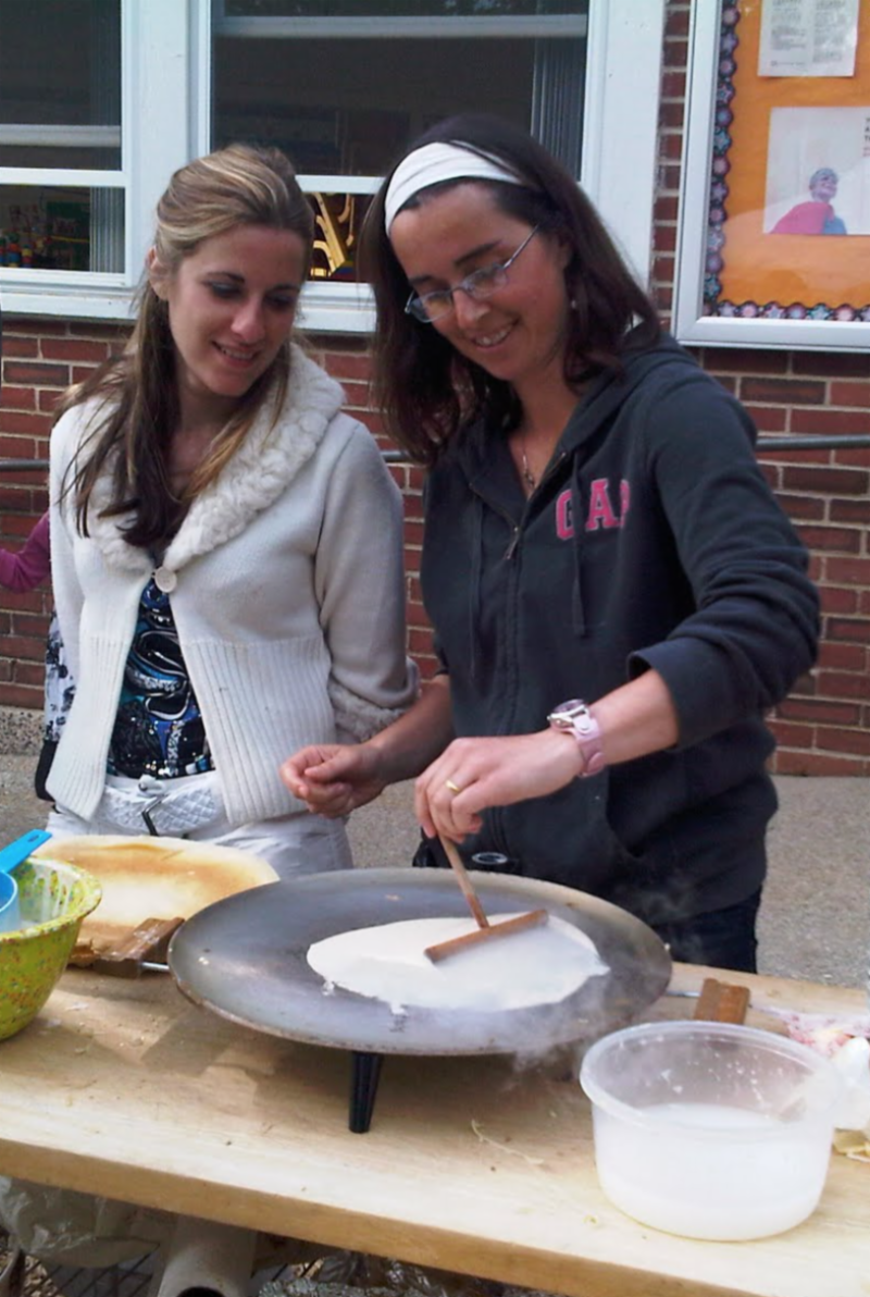 Teachers Laura Piehl and Valérie Legentil prepare crêpes during the carnival!
