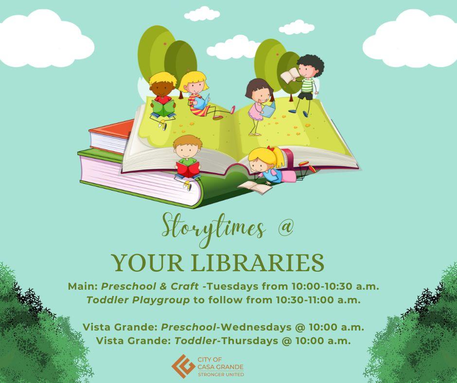 Though each Storytime is geared towards the age group, all ages are welcome.