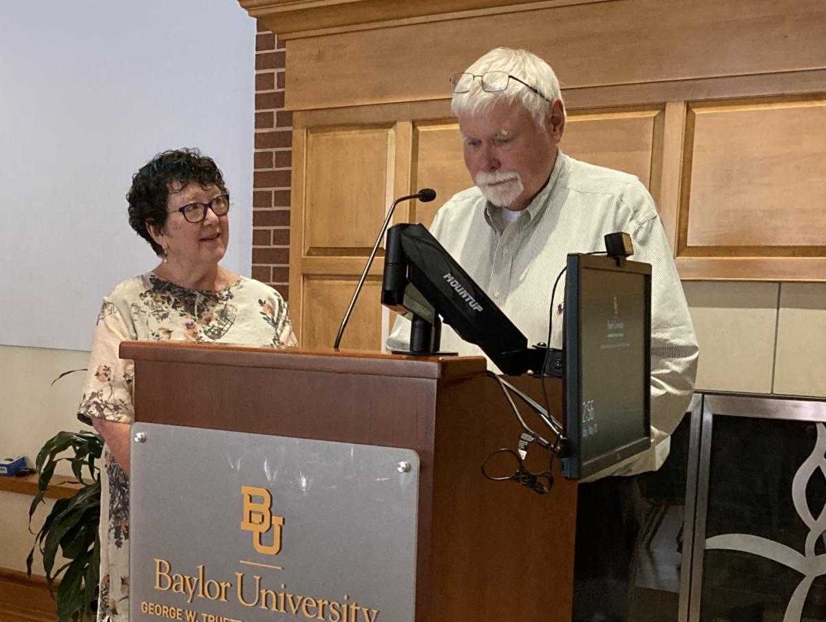 Terry Wright presents Elaine White with the Baylor Lifelong Learner Excellence Award. | |