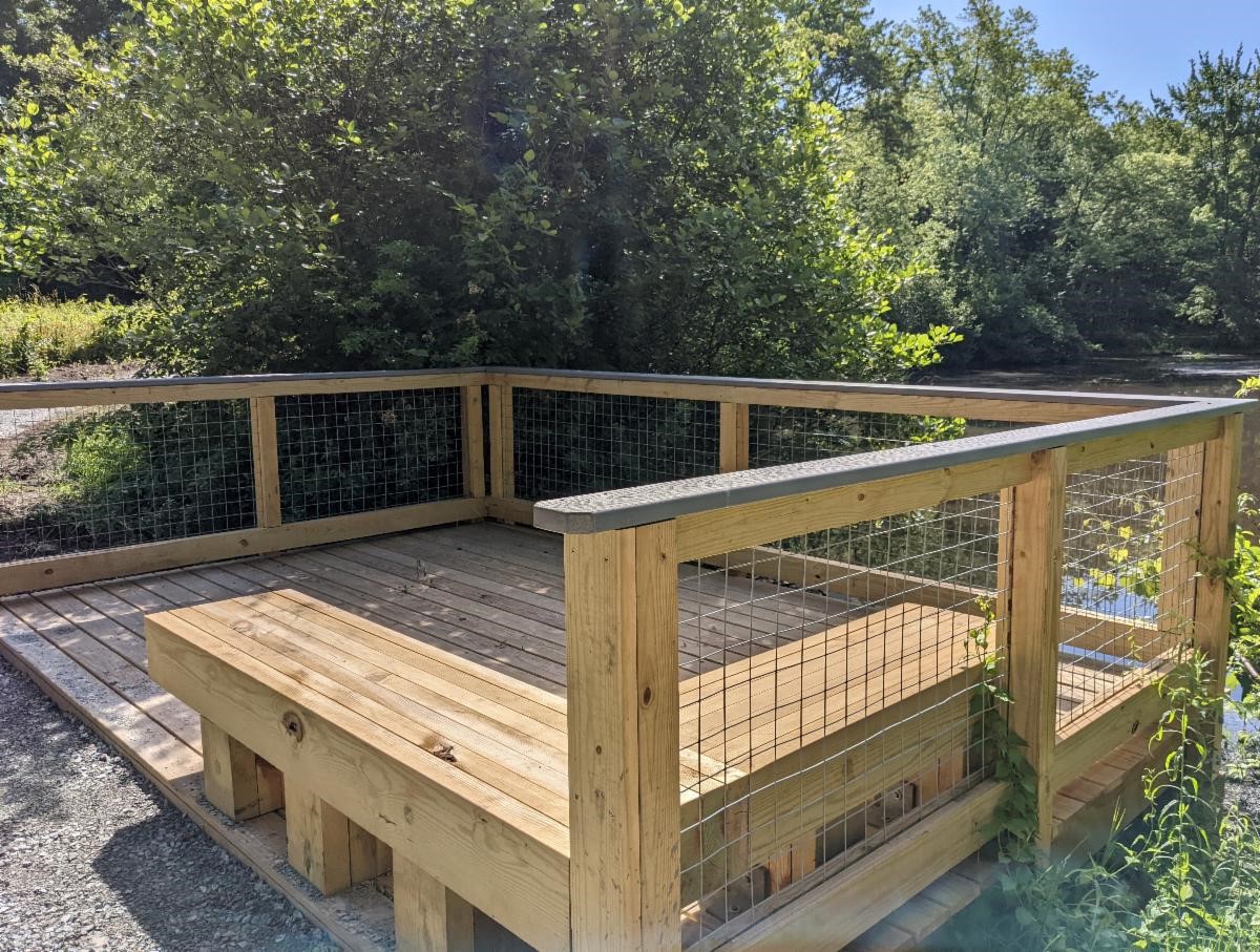 The constructed trail boasts proximity and connection to the Minuteman Bikeway, 1697ft of accessible trails over pervious surfaces and boardwalks, parking area improvements including 4 parking spaces, 1 of which is handicapped accessible, and installation of a viewing platform overlooking the pond. Some final touches are still pending including installation of an interpretive panel and installation of a story walk.