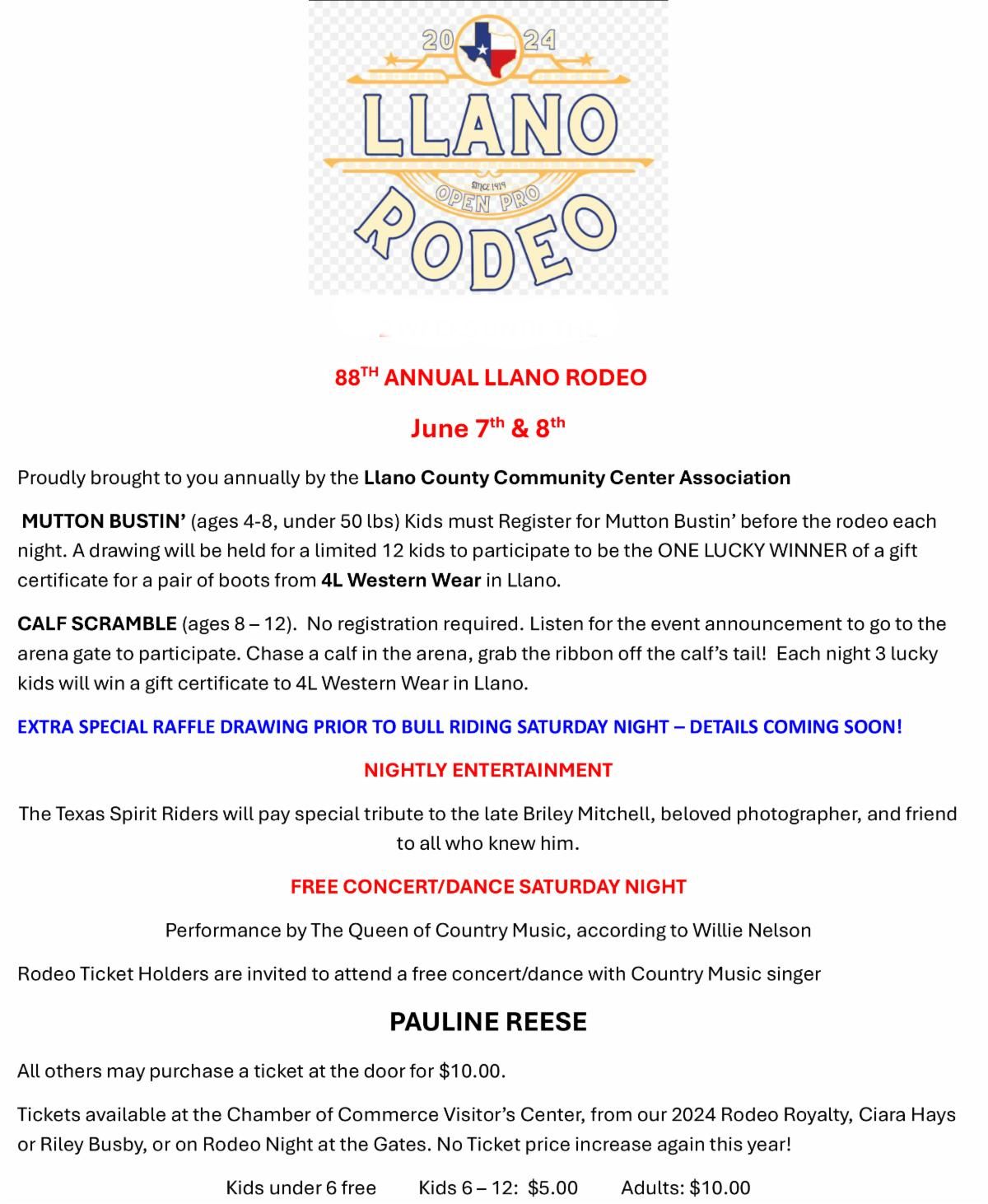 Please call or stop by the Llano Visitor Center-Chamber of Commerce