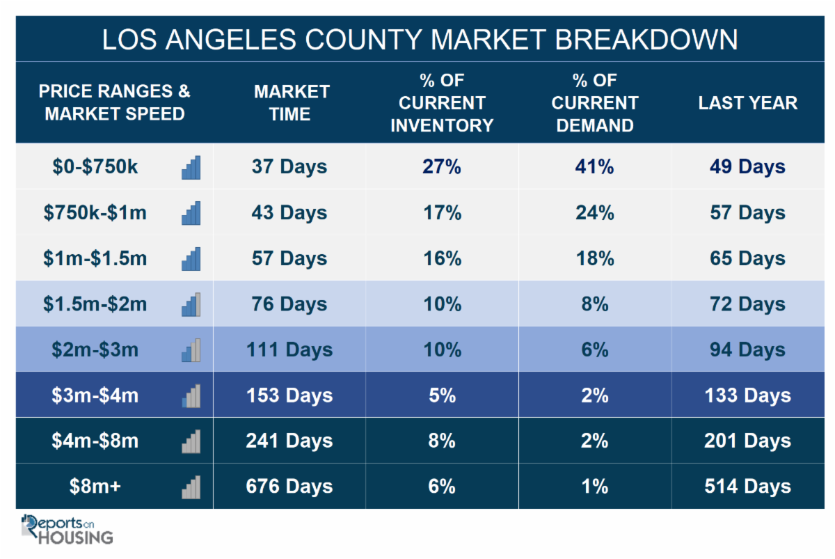 - The luxury end, all homes above $2 million, account for 29% of the inventory and 11% of demand.