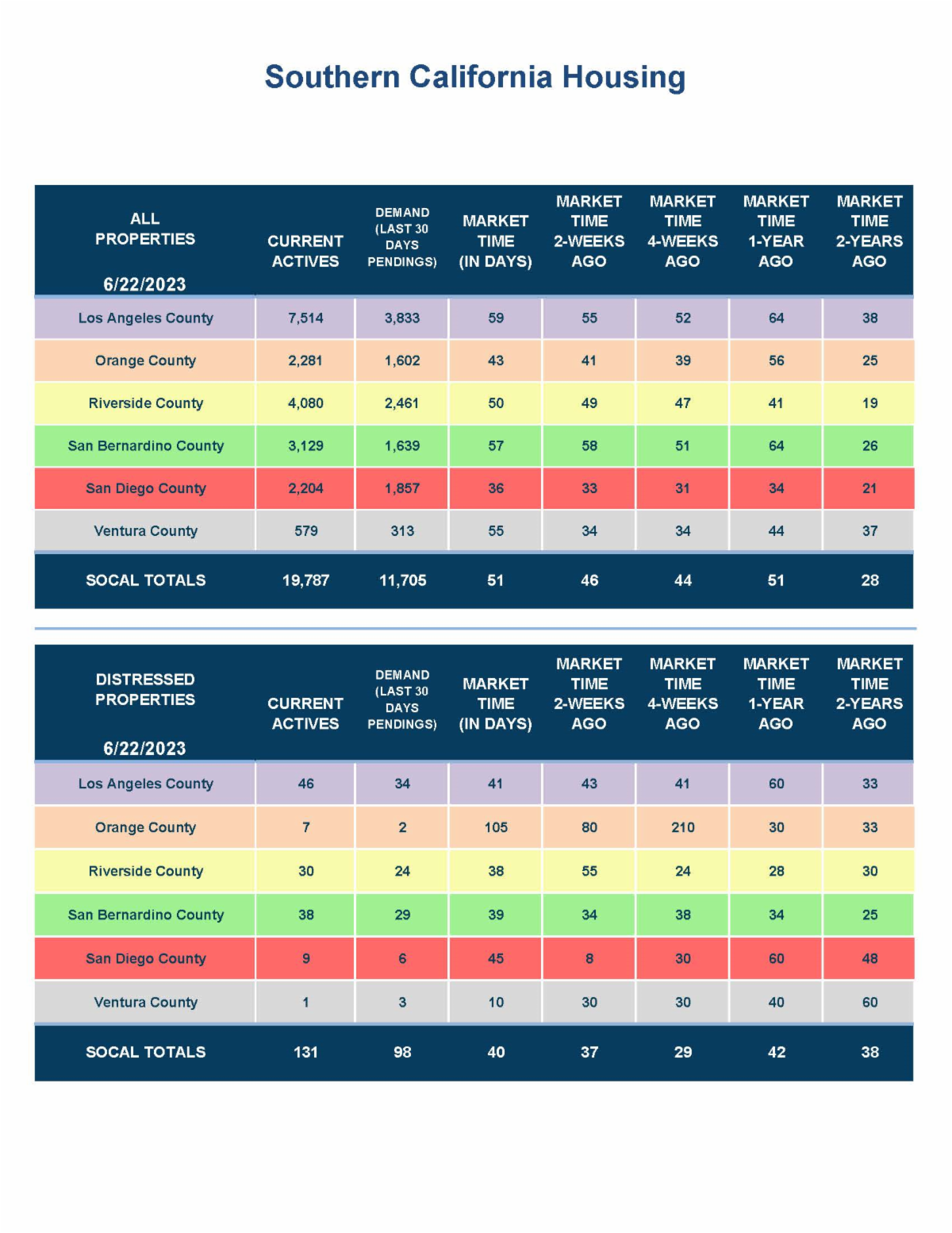 In the past couple of weeks, the luxury inventory of homes priced above $2 million increased from 2,092 to 2,209 homes, up 117 homes, or 6%, its highest level since December 2020. Luxury demand decreased by 43 pending sales, down 11%, and now sits at 361. With supply rising and demand falling, the Expected Market Time for luxury homes priced above $2 million increased from 155 to 184 days, its highest level since February. Luxury is not instantaneous like the lower ranges and is comparable to last year. The gap between the lower end and luxury is widening.