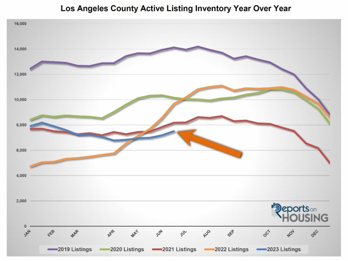 In 2023, the year started with 7,907 homes; only 2021 and 2022’s starts were lower. The inventory bottomed in April at 6,778 and has added only 736 homes since, currently sitting at 7,514, its lowest end-of-June level since tracking began in 20012. Last year at this time, there were 9,673 homes, 29% more or an extra 2,159 available homes. The 3-year average before COVID was 12,885, an additional 5,371 homes or 71% higher than today. While demand remains at Great Recession levels, unlike last year, it is matched against a catastrophically low supply.