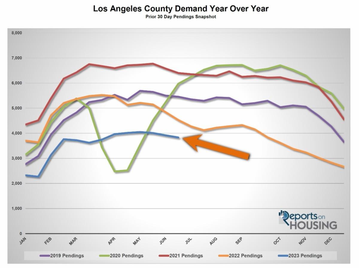 Last year, demand was at 4,526, 18% more than today, or an extra 693. The 3-year average before COVID (2017 to 2019) was 5,789 pending sales, 51% more than today.