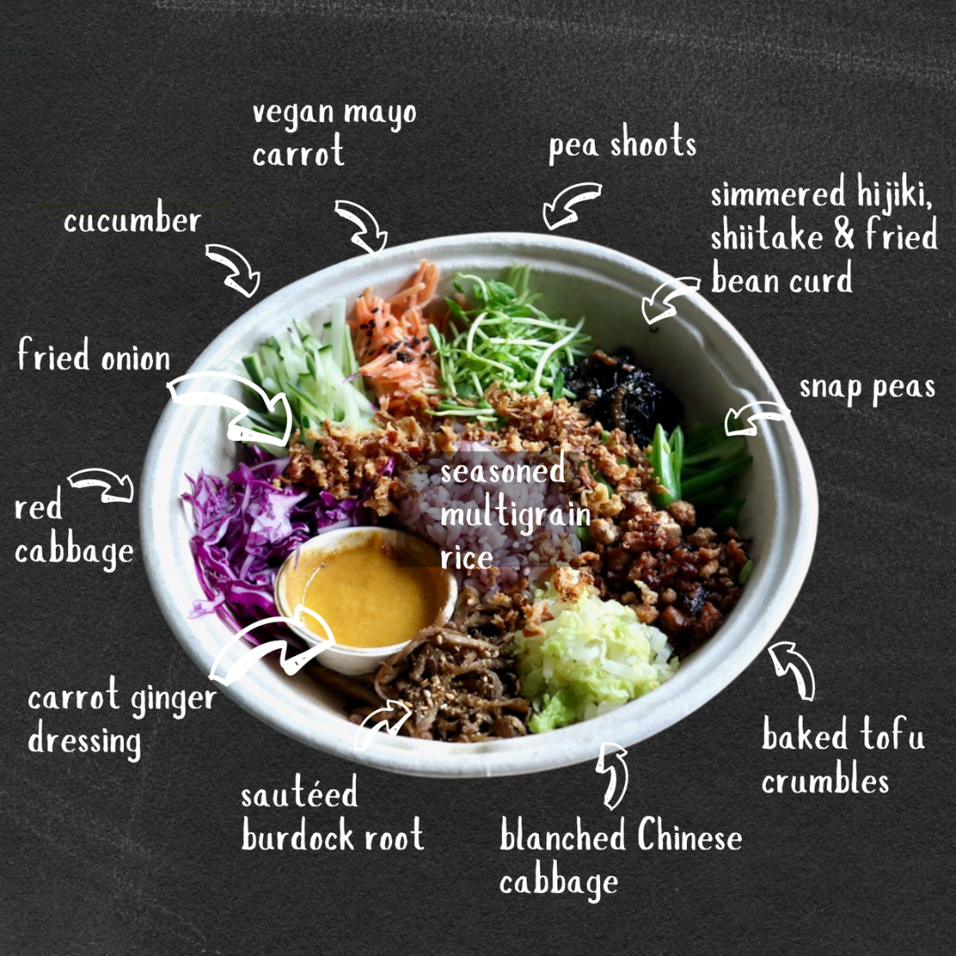 This summer, Hungry Ninja has been a godsend to those of us who enjoy fresh, flavorful food, and don’t want to lift a finger. Sharing a love of healthy cooking and Japanese food, two Newton moms, Yoko Bryden and Shinobu Swindell, recently launched Hungry Ninja at Newton’s Farmers’ Markets, with their signature “Vegan Sushi Bowls” regularly selling out as their popularity grows week after week. The bowls are a creative vegan take on traditional chirashi sushi, with over a dozen carefully prepared ingredients like seasoned vinegar rice, sauteed burdock root, baked tofu crumbles, simmered hijiki, and a medley of fresh julienned veggies served with a carrot ginger dressing. Pre-order Vegan Sushi Bowls and other Hungry Ninja menu items for the Wednesday, August 21 Allen Center Pop-up, by 8 PM on Tuesday, August 20th. Dig into yours on the patio or order bowls to take home for an easy mid-week dinner.