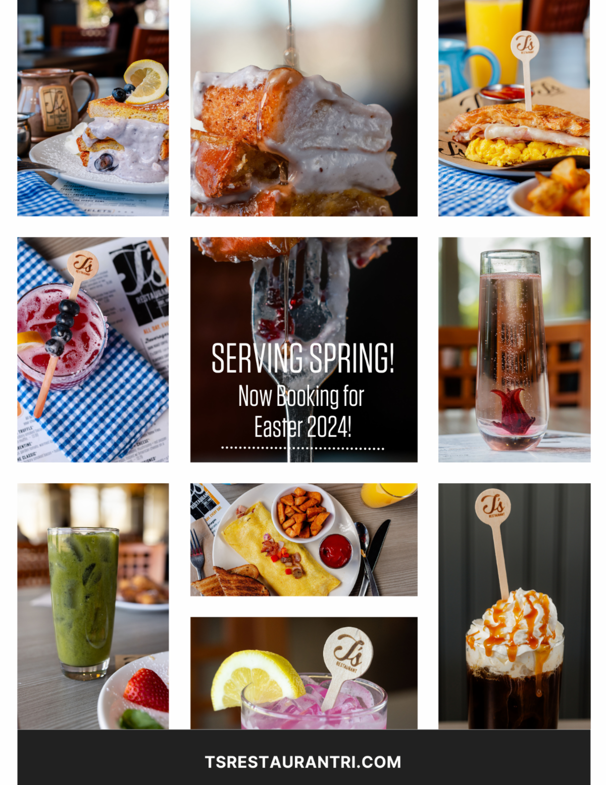 Spring has sprung at T's with the launch of our Spring menu. Join us for seasonal specialties like our; Lemon-Berry Stuffed French Toast, Hot Honey + Ham Croissant, Blueberry Lemon Margarita, Spring Herb Ricotta Omelet and more.