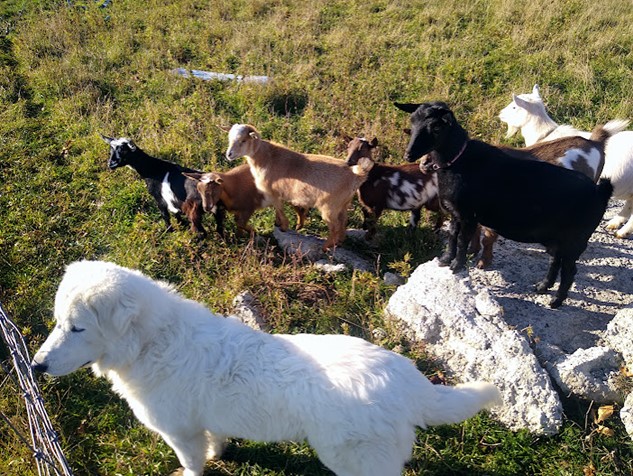 We have a small dairy farm west of Schenectady, New York, Willihan Farm, with a herd of Nigerian dwarf goats. We have coyotes, bobcat, bears and hawks for predators. After doing research, I believed that a Maremma would be a good fit for us. We brought home 'Custode' our Italian guardian at 10 weeks old. His breeder let us know that the greatest chance for success from the start was to put him right in with his charges as soon as he was home. Obviously, he was left unsupervised most of the day. So, Custo kept the goats safe from the predators, but who would keep the goats safe from Custo?