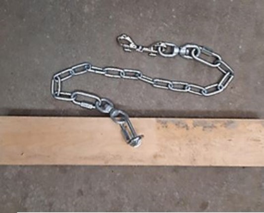 In looking for an answer, I came upon an article written by Texas A&M. The subject of their article was just what I was looking for, a method to keep adolescent LGDs from biting and injuring sheep or goats. The dangle stick is a device that can be easily made at home and keeps the dog from chasing or at least slows down the dog when chasing the goats or sheep. It is a stick that is made from PVC or wood and hangs from the dog's neck in front of his legs. It extends a couple inches longer than the width of his legs. When he runs it's long enough to impede his gate and slow him down. They have specific directions on the website that I followed and was able to easily replicate the dangle stick. Mine was made of wood. My first attempt I used a 2x4 which was way too heavy for him. I changed it to a 1x2 and it was heavy enough to do the job but still enable him to move around. A very important part of this assembly is to ensure that the connections between the collar and the chain and the chain and the wood are able to swivel, otherwise it becomes a tangled mess. Another very important thing that I learned too late was ensuring the correct length of the chain of the dangle stick. When the dog does run it will hit his legs. It needs to be the proper length to hit him above the knee, not on bone. I learned this the hard way, there were welts on his legs from the chain being too long. When I got the length right the welts went away.