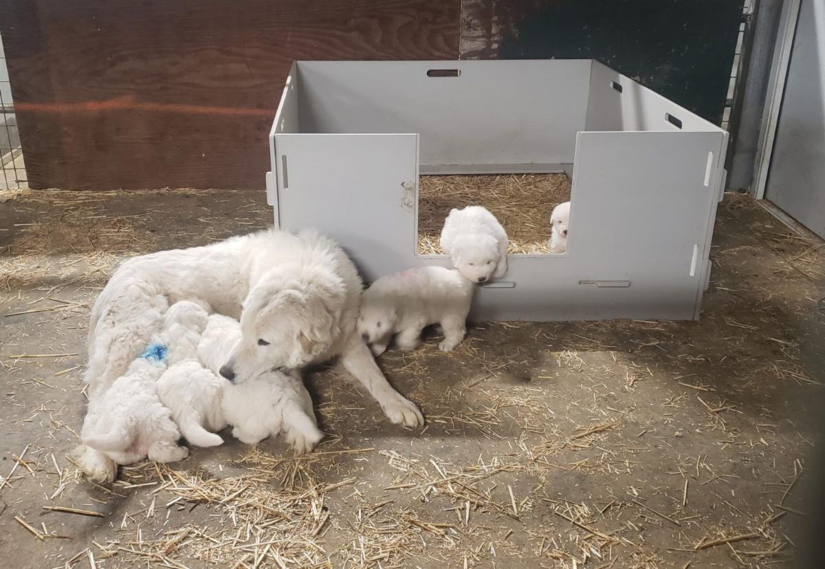 Our puppies are born in the barn next to their future charges and essentially stay with them 24/7. With various herds and pastures but always with stock. If you would like to see more pictures, please visit our Facebook page and/or website. All our puppies are well socialized with people.