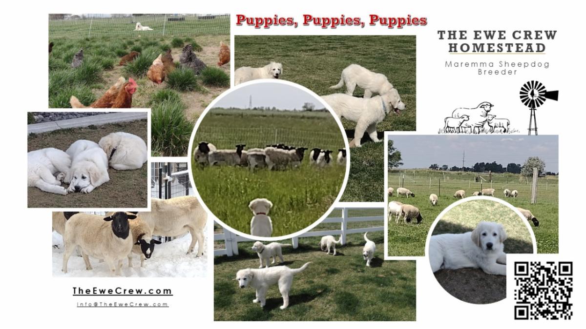Our working Maremmas live on pasture protecting sheep, chickens and barn cats from coyotes, foxes, birds of prey and stray dogs. Maremma Sheepdogs thrive in homes, farms and ranches using them as working livestock guardian dogs (LGD).