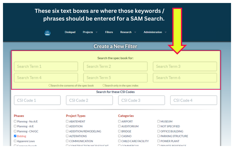 SAM Search is an excellent way to narrow a search to specific keywords or phrases members want to find in a project's specifications. A SAM Search saves time that may be spent needlessly scanning section after section of specs. It also helps find sections which may have otherwise been missed.