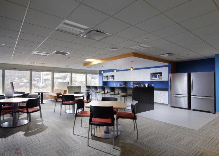 th floors of Four Allegheny Center for Highmark, Inc. The project included renovations to 40,000 SF of space within the four-month fast-track schedule. The scope of work included selective demolition, new partitions and finishes, HVAC ductwork, plumbing, electrical, and modifications to the existing sprinkler system. Each floor contains open office area, conference rooms, offices, breakrooms, restrooms, and lobby improvements.