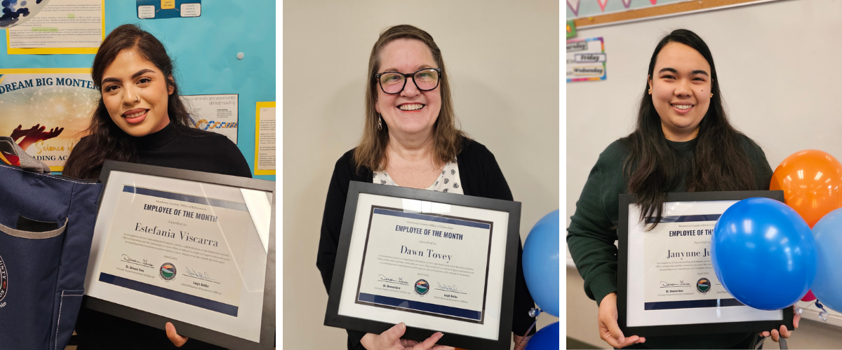 MCOE Employees of the Month are honorably recognized and nominated by their coworkers for outstanding job performances. Each month, Monterey County Superintendent of Schools Dr. Deneen Guss, the MCOE Communications team, and the awardees' managers and team members visit each awardee for a special surprise visit at their work location with balloons, a certificate, and an MCOE bag of swag. This month, MCOE is proud to recognize three extraordinary employees.