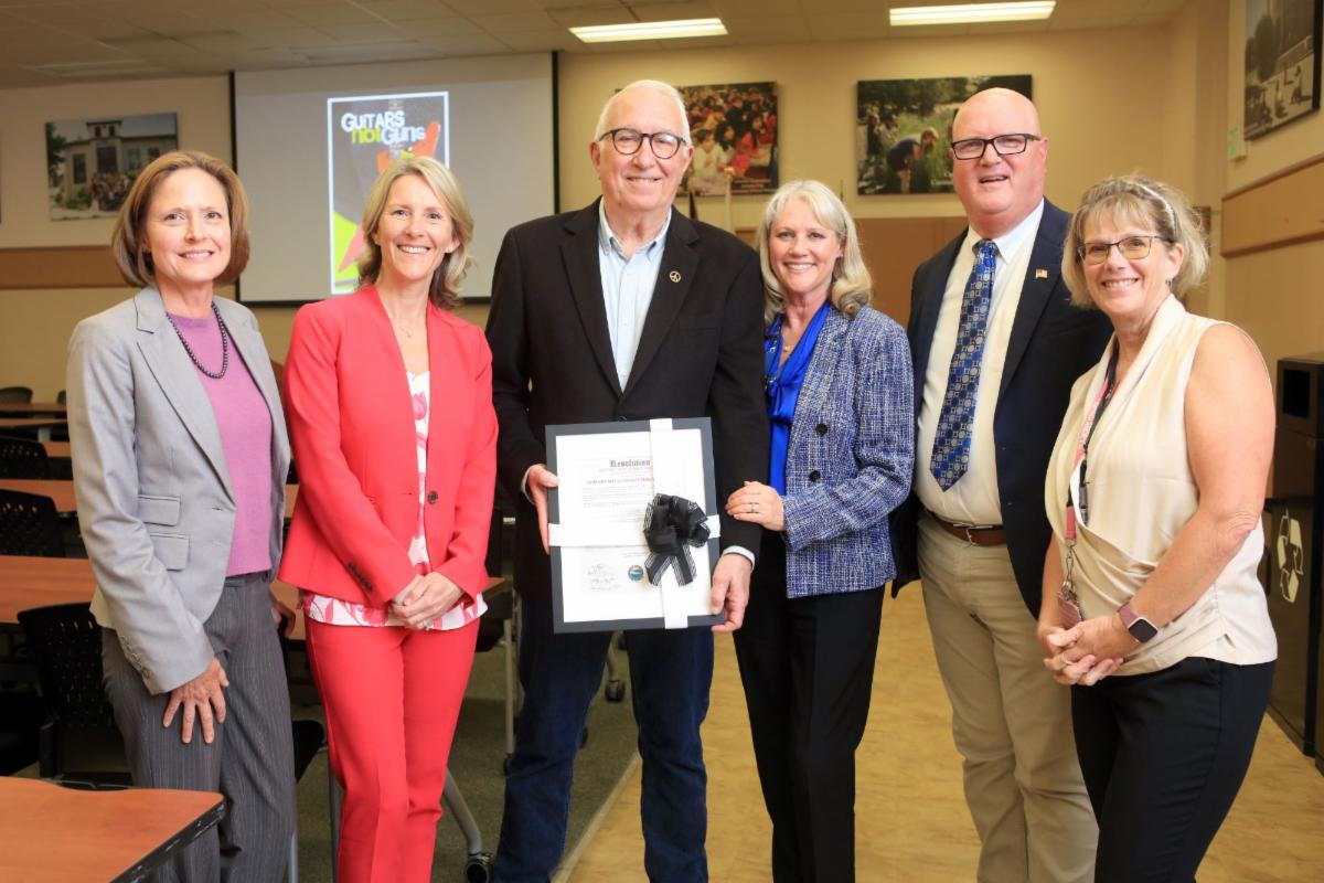 Guitars Not Gun Empowers Youth Through Music With A Generous Donation | The Monterey County Office of Education (MCOE) and the Monterey County Chapter of Guitars Not Guns recently joined forces to celebrate the profound impact of music, community, and generosity. Guitars Not Guns Director and Co-Founder of the Monterey Chapter Steve Vagnini presented MCOE with 200 Keith Urban Yamaha Guitars and Gator guitar cases, generously donated through Monterey County Gives. | |