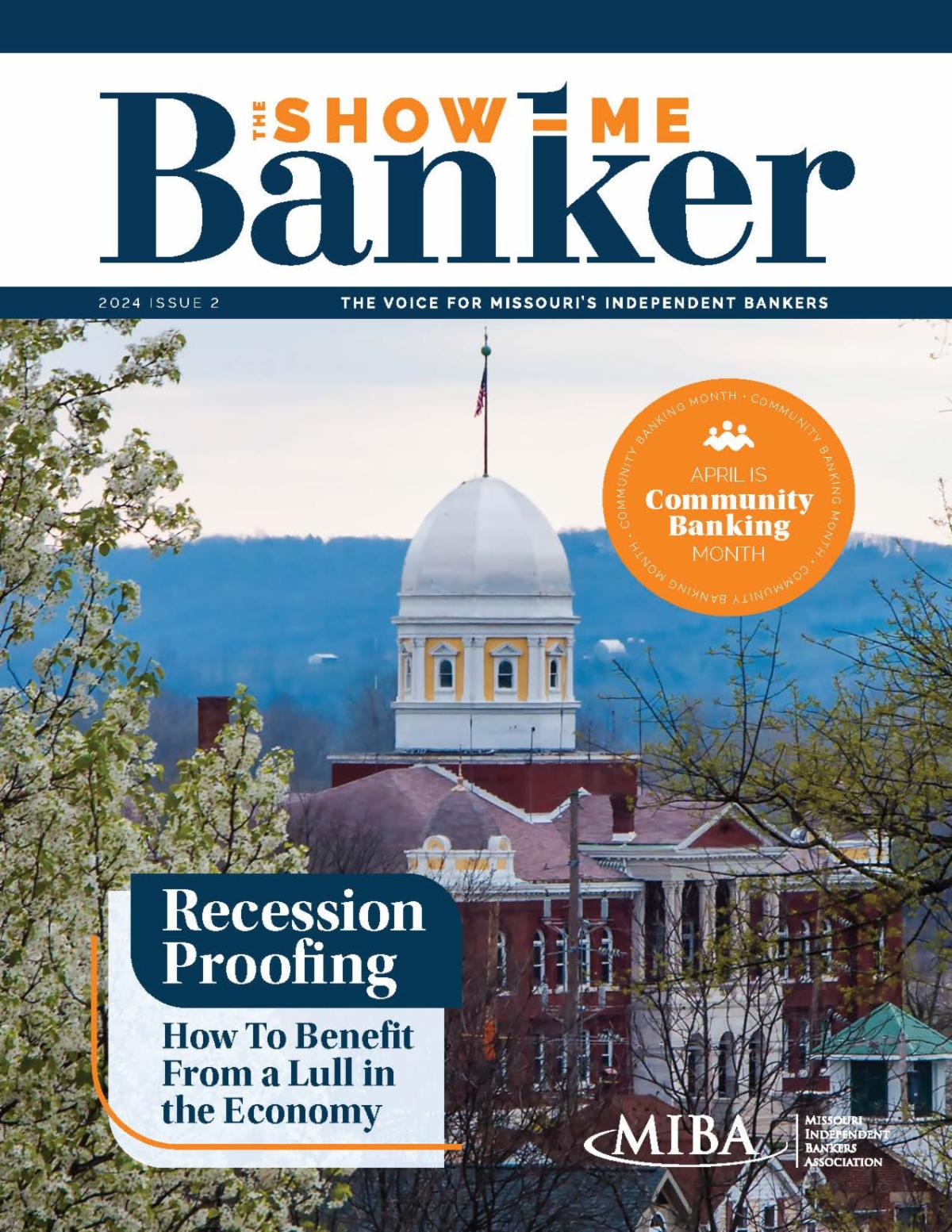 The Association publishes a bimonthly magazine with articles of interest to the membership. Subject matter pertains to state and national legislative and regulatory issues, as well as other information of a timely nature, pertinent to the Association membership. The MIBA magazine is your link to information vital to independent banking in Missouri.