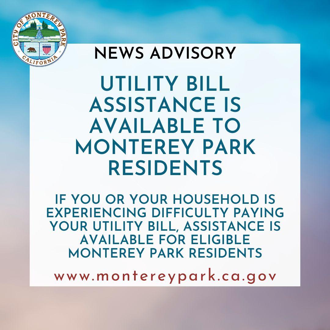 If you or someone you know is in need of utility bill assistance such as lifeline discounts, please visit www.montereypark.ca.gov/utilitybilling.