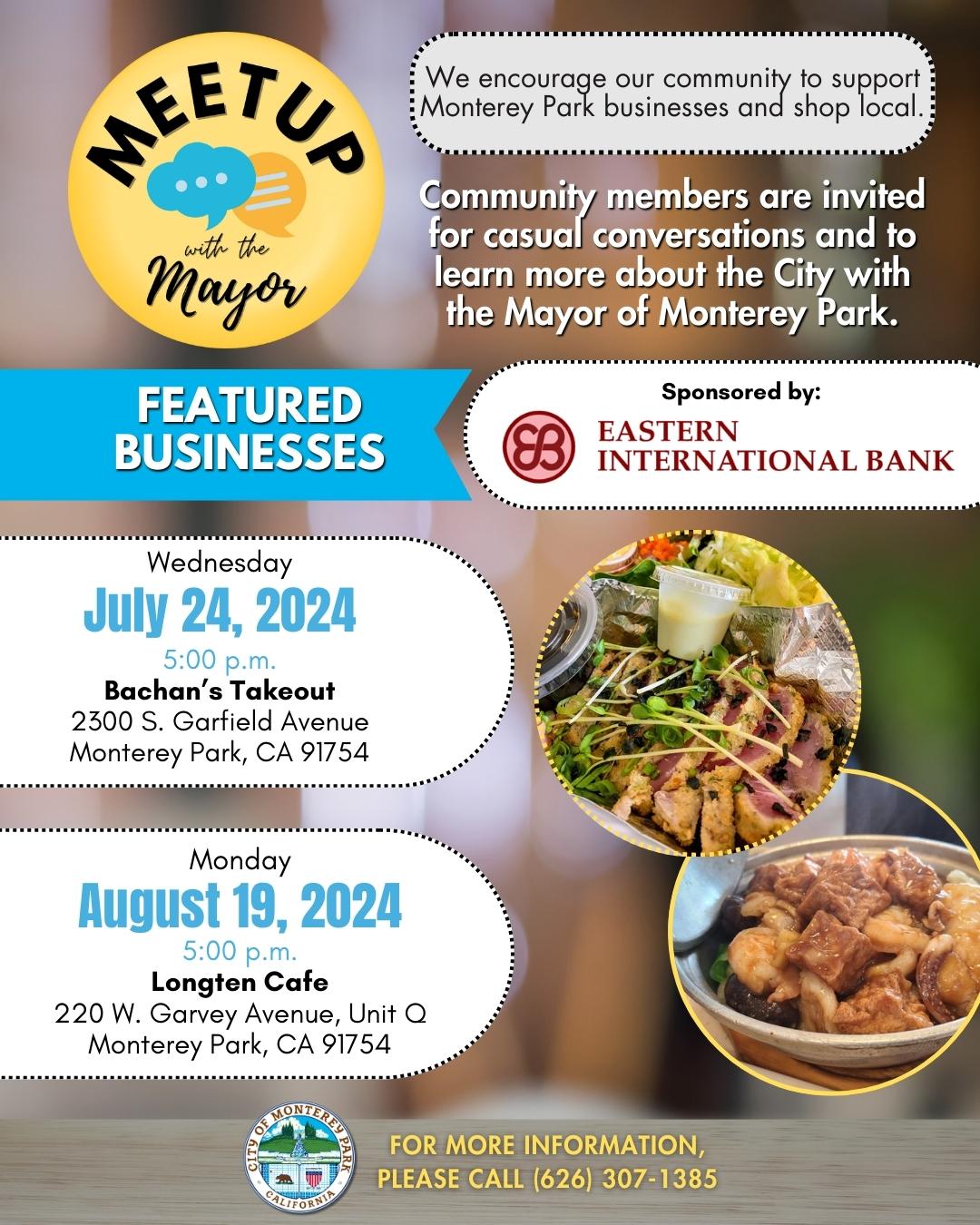 Community members are invited for casual conversations and to learn more about the City with the Mayor of Monterey Park.