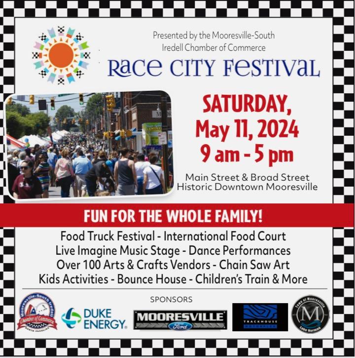 Race City Festival Saturday May 11th 9am-5pm Downtown Mooresville