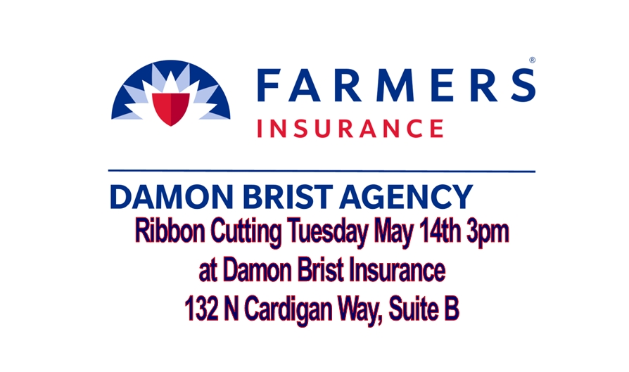 Ribbon Cutting Tuesday May 14th 3pm at Damon Brist Insurance 132 N Cardigan Way, Suite B