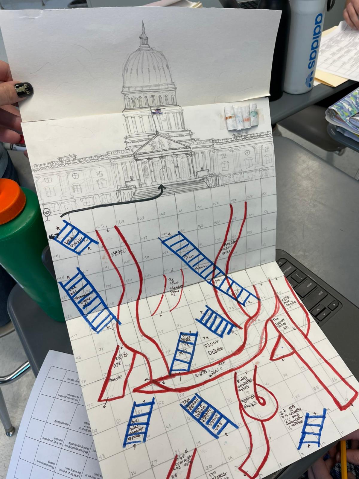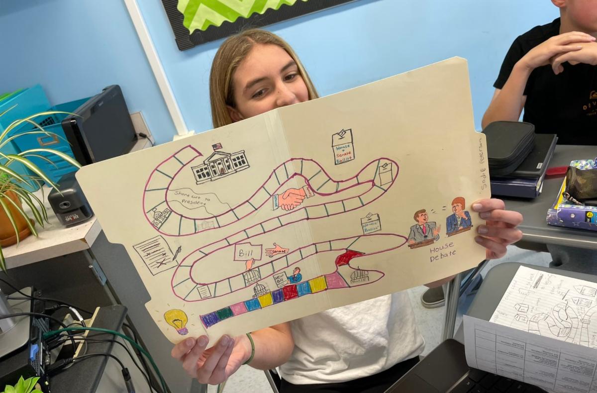Eighth grade students at Thompson Middle School in Mrs. Heather Engelken's social studies class transformed their understanding of the congressional bill adoption process into playable board games.