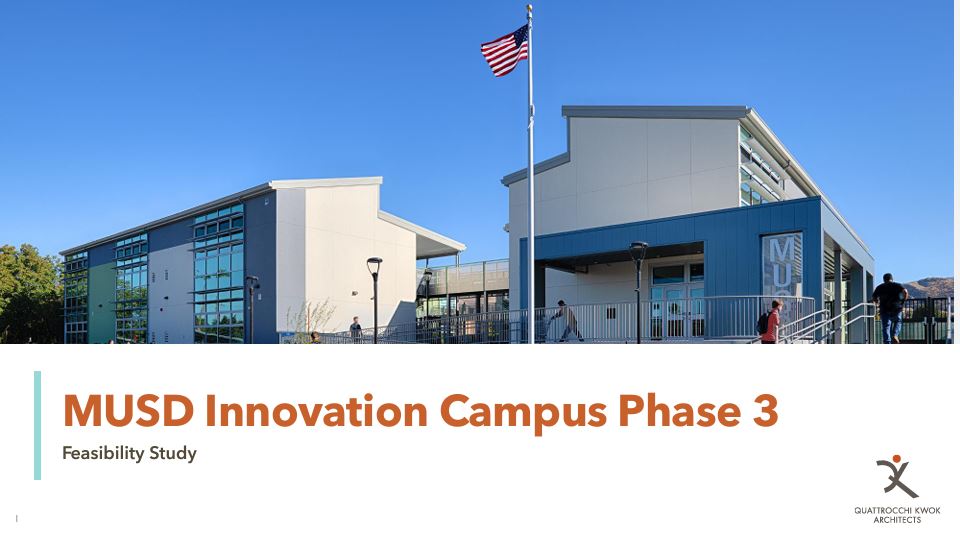 After hearing from Aaron Jobson, President of QKA, on the feasibility study for Phase 3 of the MUSD Innovation Campus with the scope of work moving forward, the Board of Education voted for Option A, which consisted of full replacement of two older structures to build the Workforce Development and Childhood Development Centers.