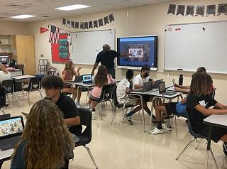 Mr. Antoine’s 8th Grade Advance ELA students analyzing specific details in an image to understand perspectives.