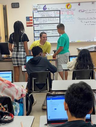 Mr. Montijo helping a small group of students with understanding the greatest and least common factors.
