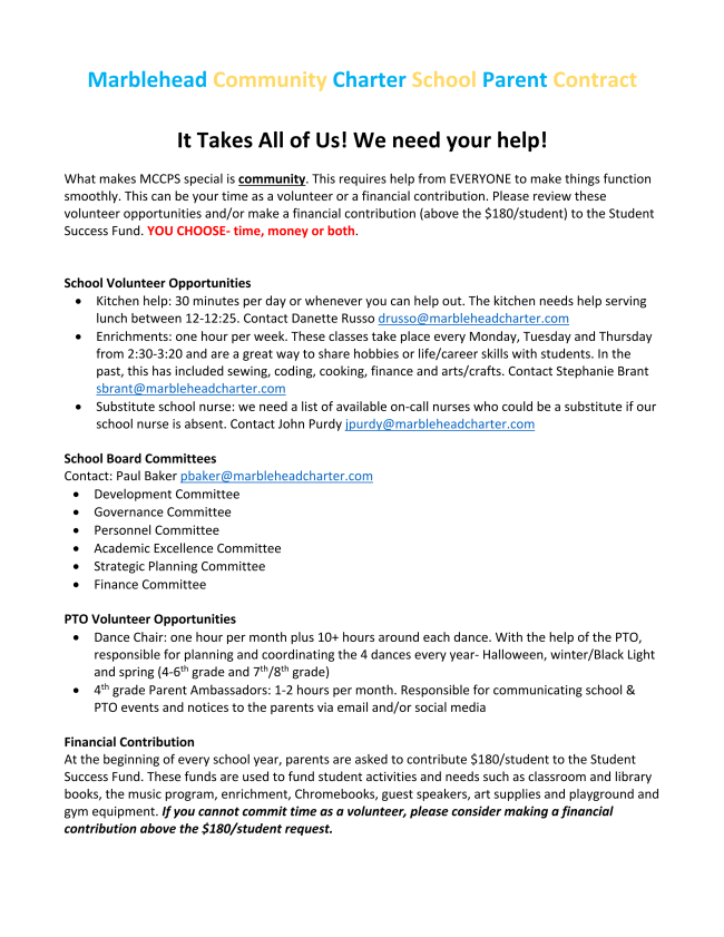 Hello Marblehead Community Charter Families,