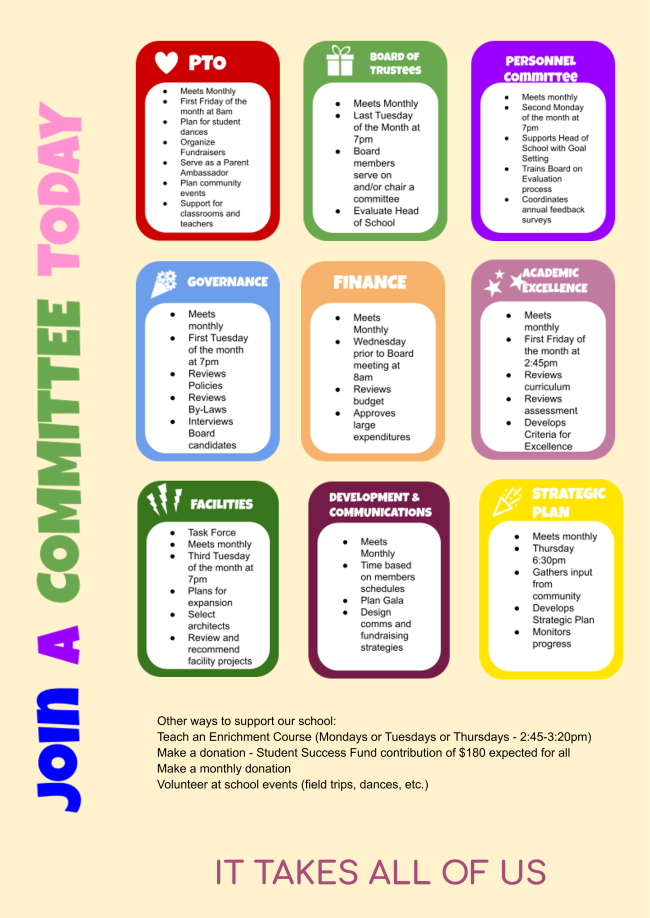 As we look to both support our art classes and provide Emily Miner with some experience as she works toward becoming an art teacher, we are excited to share that Emily will continue as the Office Manager and also be an assistant art teacher. We are also excited to share that Meg Upton, a parent of a current 7th grader, will be our Assistant Office Manager.