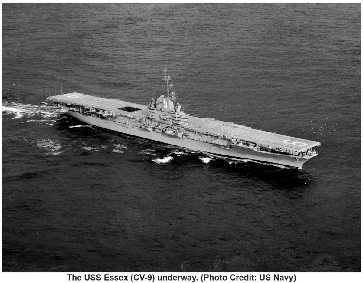 Essex-class carriers also had a "cross-deck" catapult to launch planes from the hangar deck. If planes were bunched up on the flight deck and timely reconnaissance of the enemy was required, for instance, it would allow a scout plane to be launched. It wasn't used often and was ultimately removed, Lynch said.