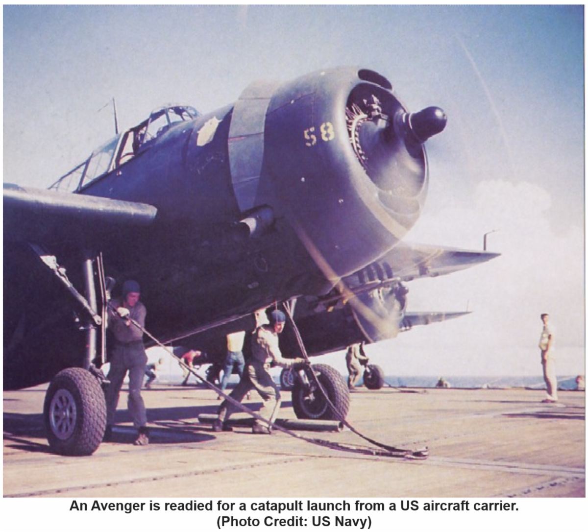 Launching depended on how fast the ship was going, the velocity of natural wind, the payload of an aircraft, and its type, Lynch said. Catapults could be used if the payload was heavy, like a Mark 13 torpedo, of which the Museum has a volunteer-made replica. Hook-like devices on or near the main landing gear allowed attachment of a "bridle" to a "shuttle" in a flight-deck catapult.
