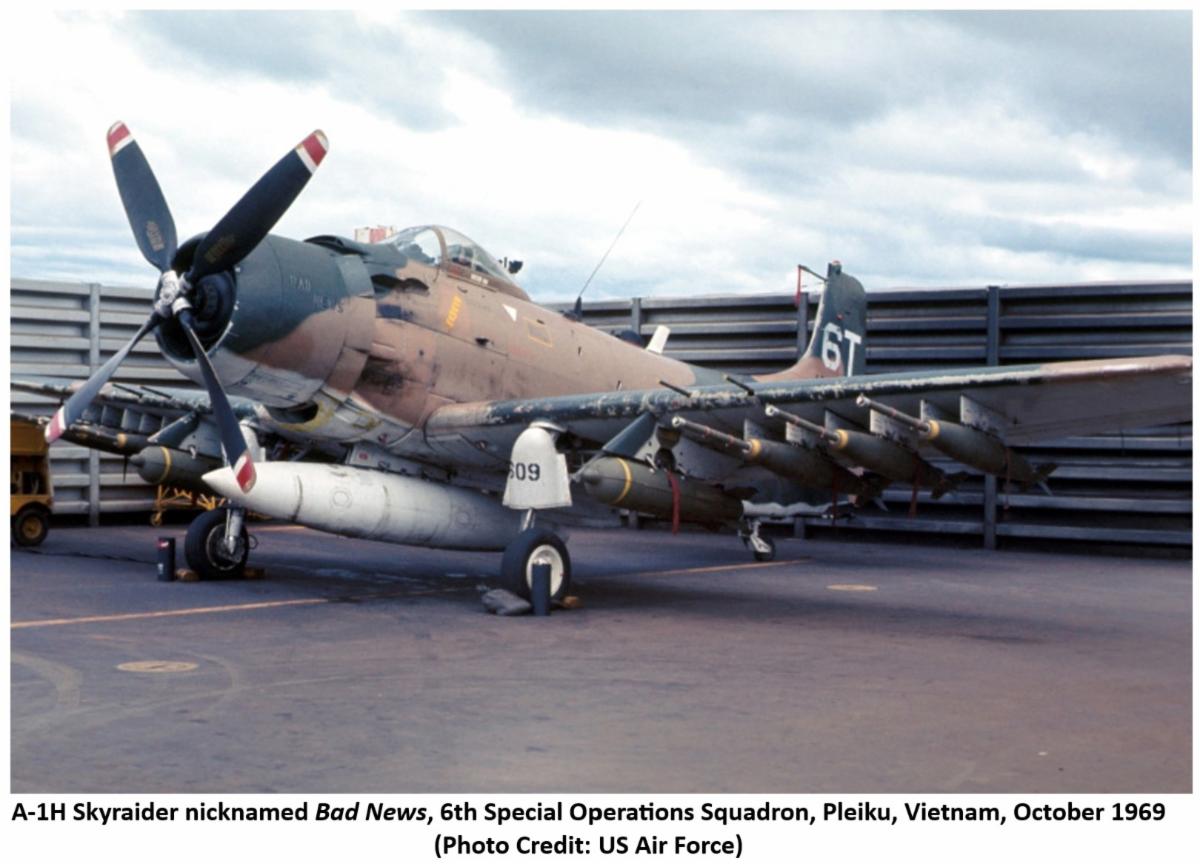 In August of 1967, Cressy said, the USAF formed Skyraider squadrons for special operations and search and rescue squadrons. In 1968, they began flying from Pleiku Air Base in South Vietnam and Nakhon Phanom Royal Thai Air Force Base, Thailand.