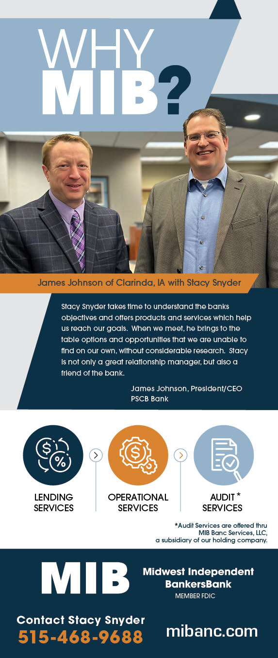 CBI attempts to publish as many different viewpoints as possible to provide you with information on what is being said and read in the banking industry. CBI does not necessarily endorse or support the opinions given in these third-party news sources. Send news from your bank or company to CBI by contacting Krissy Lee, Communications Director at klee@cbiaonline.org. ©2023 Community Bankers of Iowa. You are receiving this message because you are a listed recipient of Community Bankers of Iowa's communications. | | | | |