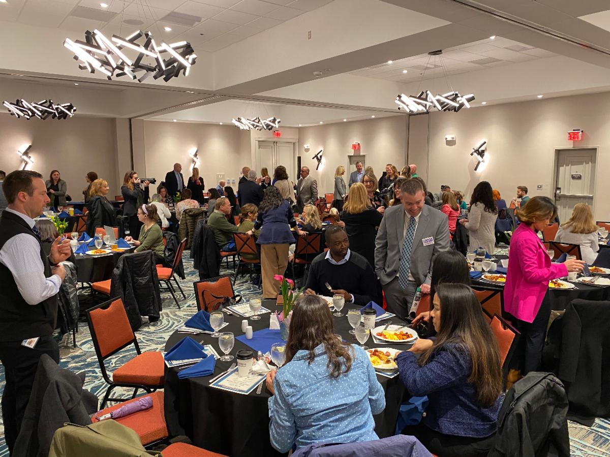 Bright spots include Lowell’s LINC project, partnerships for DEI and other training with the Middlesex Community College, the growth of advanced manufacturing in places like Billerica, and new cannabis facilities. Emcee Pat Cook simultaneously revved up the audience and promoted the MA Pirates indoor football with a series of pirate jokes. Chamber President, Danielle McFadden closed the event with her "lighting round" for the panelists which brought much laughter including questions like "what song do you use to hype up before the Town Meeting?", "what is the way to your heart?", and "describe yourself in three words". | |