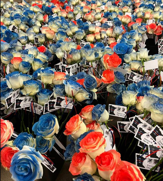 Backing the Blue Line, members at International Plaza, were called into action after the tragic events in Burnsville on February 18. This local non-profit organization relies on others to help with their mission, which has created important relationships like the one they have with fellow OC member Johnson & Sons Florist. Backing the Blue Line ordered 4,000 white roses, additional ribbon, and even red spray paint to make sure Burnsville police officers Matthew Ruge & Paul Elmstrand and fire medic Adam Finseth were honored appropriately. Johnson & Sons Florist delivered the roses and called multiple floral shops around the Twin Cities asking for additional bins so they could make sure the roses were well taken care of.