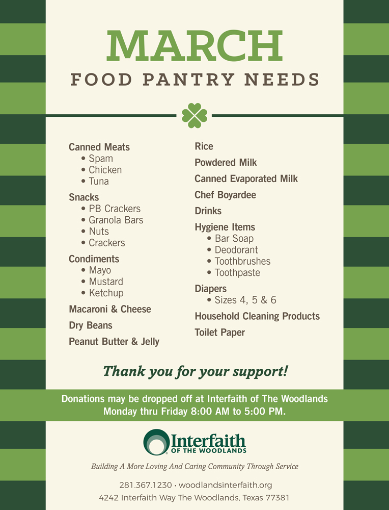 March Food Pantry Needs