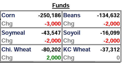 Funds were thought to have been mixed today with corn and beans sellers and wheat a buyer.
