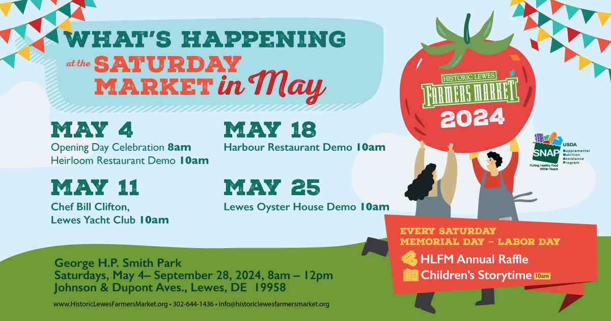 DUE TO INCLEMENT WEATHER, THE MARKET IS MOVING THIS SATURDAY, MAY 18, TO THE LEWES ELEMENTARY SCHOOL PARKING LOT, 820 SAVANNAH RD, LEWES.