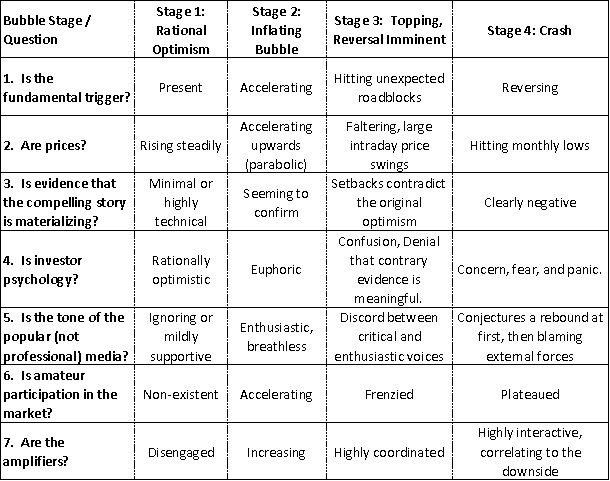 The history of bubbles starts with the Dutch Tulip Mania of 1637, and the occurrence of bubbles has accelerated, especially in the past 20 years. Among others we had the Dot-com bubble of 1996-2000, the housing bubbles of 2004-2006, the Chinese stock market bubble of 2006, and the Bitcoin bubble of 2013. As markets, information, and the trade of assets has expanded, bubbles have become a frequent characteristic of modern markets (note the two bubbles apparent on the Chinese stock chart at the end of this newsletter). In order to deeply understand the mechanics of bubbles, the Nobel-laureate Vernon Smith developed the most widely cited experimental model to elicit bubbles among laboratory participants. Smith and his co-authors designed a set of experiments in which a trade-able asset gives a dividend with the expected value of $0.24 at the end of each of 15 periods. Within each round, the market is open for trading shares. At the end of each round, each share pays a dividend. The dividend per round is one of $0, $0.08, $0.28 or $0.60 cents with equal probability. At the end of the experiment, after 15 rounds, the assets are worthless. Classical economics would predict that the asset would start trading near $3.60 (15 times $0.24) and decline by 24 cents each period. Smith and his co-authors found instead that prices started traded well below the fundamental value and subsequently rose far above it in later periods. The average transaction price peaks around periods 9 to 11 and it crashes from periods 13 to 15. This experiment has been repeated hundreds of times in labs around the world with similar results. Experimental bubbles emerge despite various manipulations to the experimental model, including allowing short-selling, margin buying, and insider trading. Even when uncertainty about payoffs and asset values is eliminated, bubbles persist. Bubbles arise regardless of whether participants are business students, managers, or professional traders. Given the predictability of these valuation bubbles despite various experimental manipulations, it’s apparent that a psychological element - as yet unquantified - is a defining feature. That psychological aspect is evident in everyday descriptions of bubbles, in which words such as “mania” and “irrational exuberance" are used. To describe the process of a bubble’s crash, terms such as "fear" and “panic” are employed. Research examining the impact of such emotions during a Smith’s classic experimental market finds that positive excitement among participants generates larger pricing bubbles (references at end), positive facial expressions of investors correlate with larger bubbles, and investor fear induces early sell-offs in bubbles. Results from (Andrade, Lin and Odean; 2014), who induced various emotions in bubble participants using movie clips, is visible below:  We may be in the midst of several bubbles currently: a bond bubble, a biotech (and social media) bubble, and a Chinese stock bubble. May be is the key phrase. If a bubble is defined as market valuations widely exceeding fundamental valuations, then hindsight is the only real evidence (after the crash). But as investors, we don’t have the luxury of hindsight. Since there is both a massive creation and destruction of wealth during bubbles, the three questions of interest to most investors are: 1. How do I identify where and when a bubble will occur? 2. How do I identify when a bubble is underway? 3. How can I know when a bubble will go bust? We will superficially pursue these questions in this letter. To answer the first question, we need to understand the preconditions for the emergence of a bubble. To answer the second question, we will explore how fundamentals, investor psychology, media attention, and price action interact to form bubbles. For the third question we will examine bubble peaks and the signs of convincing deflation. The third question is by far the most difficult, and not having a clear plan has led to many investors - like Samuel Clemens - participating in both the ride up and the ride down.