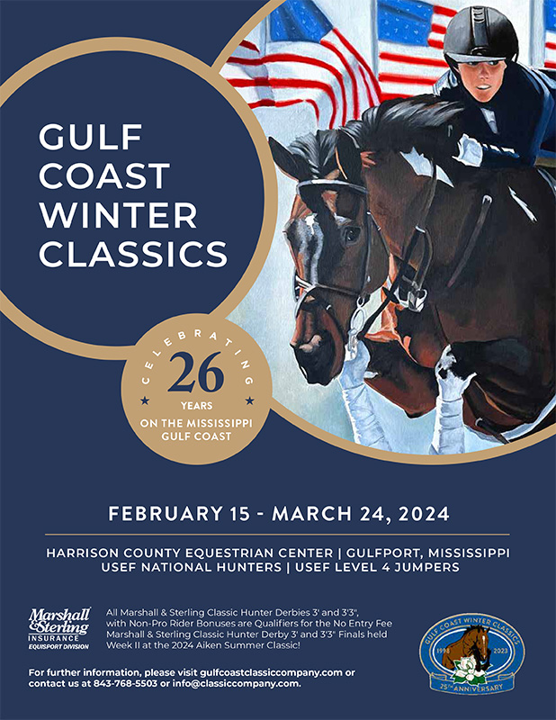 The Classic and Gulf Coast Classic Companies are delighted to announce that Marshall & Sterling Insurance will be the title sponsor of all Classic Hunter Derbies at the upcoming Gulf Coast Winter Classic and at all Classic Company produced shows through 2025.