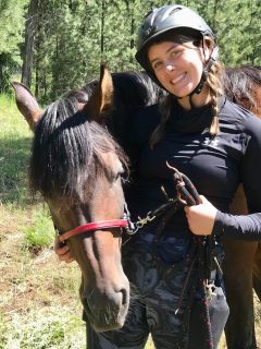 Kimberly has always loved horses. Growing up in British Columbia, Canada, she was begging her parents from the time she could walk to let her pet any horse or donkey she saw. Lucky for her, her parents indulged this passion and frequently drove to visit friends that owned a horse ranch where she could hang out with horses all day.